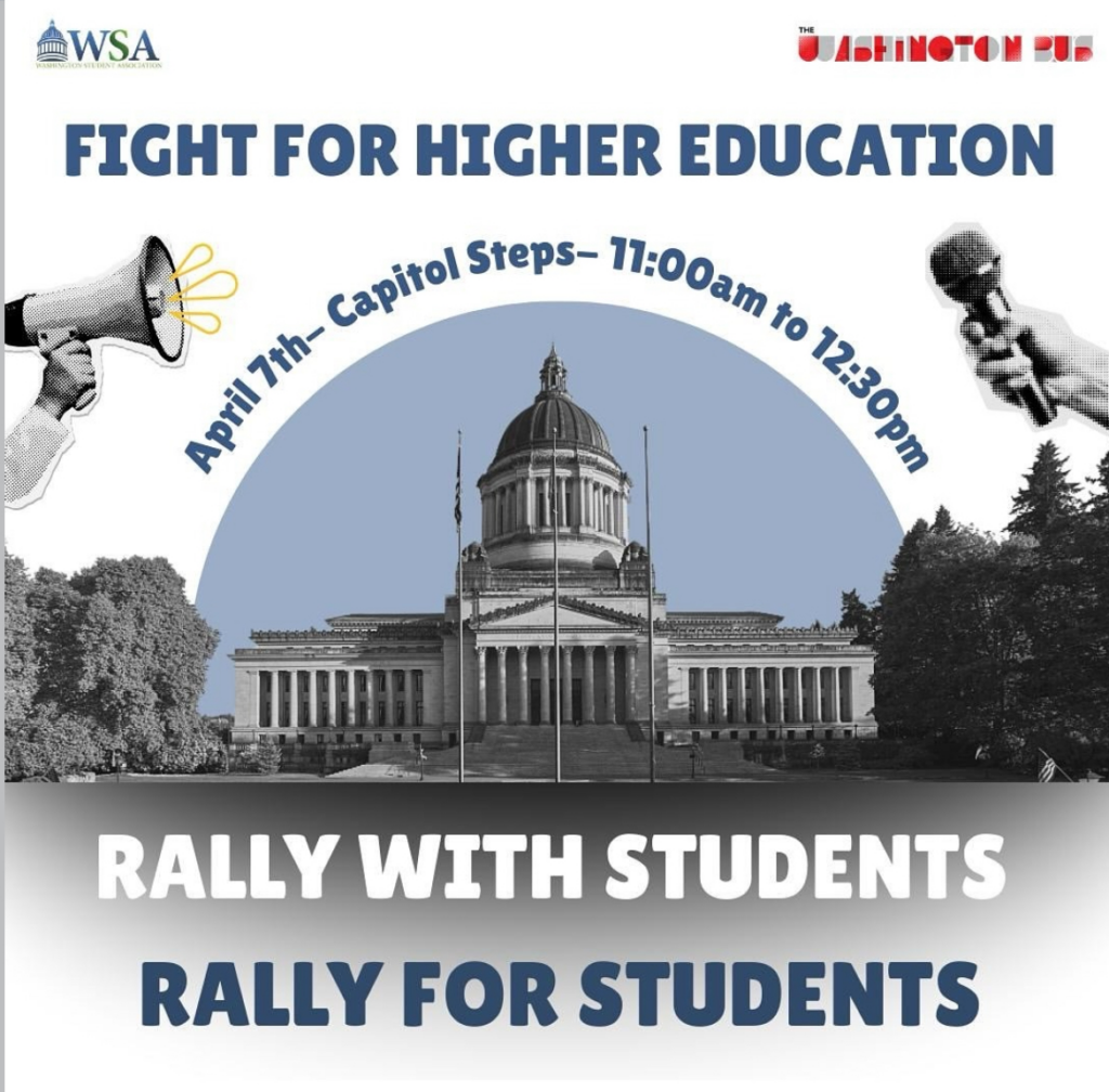 Join The Washington Student Association, The Washington Bus, and the Washington Student Engagement Network at the Capitol in Olympia on April 7th for a rally demanding our legislators to make no cuts to financial aid nor increase tuition for students.